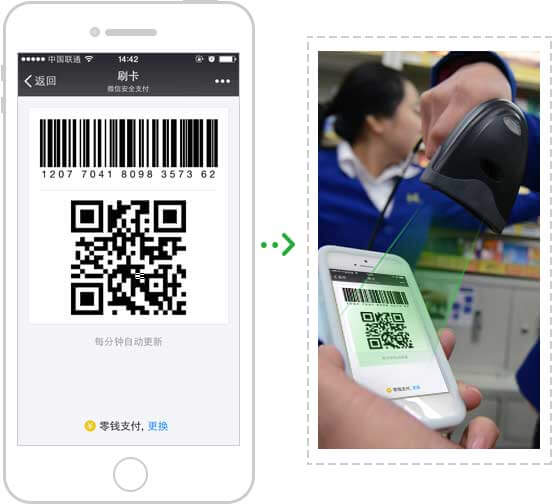 收银员用(yòng)扫码枪扫描顾客微信付款的条形码/二维码,1-2秒(miǎo)即可(kě)完成支付!只需对系统进行简单升级,无需改造硬件设备。