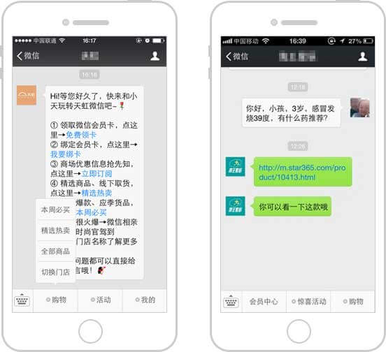 | 顾客電(diàn)话咨询 / 订購(gòu),客服沟通成本高,操作流程复杂 | 顾客可(kě)与公众号互动,享受電(diàn)商(shāng)、客服等在線(xiàn)增值服務(wù) |
