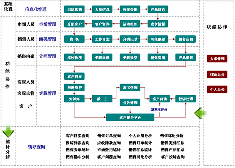 基于CRM理(lǐ)念,综合事務(wù)工作流程、业務(wù)分(fēn)析、整合供应链等各个层次的客户关系管理(lǐ)模式。它将面向客户的所有(yǒu)业務(wù)进行整合,提供了统一的业務(wù)平台,实现了在动态价值链下真正以客户為(wèi)中心的客户关系管理(lǐ)。从销售、服務(wù)与技术支持等与客户有(yǒu)关的环节。全面提升销售管理(lǐ)、客户服務(wù),利用(yòng)客户关系管理(lǐ),系统地管理(lǐ)业務(wù)信息,对客户进行准确分(fēn)类,并将业務(wù)信息作為(wèi)企业重要战略资源进行管理(lǐ)和维护,提供有(yǒu)针对性的客户关怀,提高客户满意度,挖掘潜在客户。