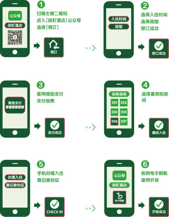 经济型、商(shāng)務(wù)型酒店(diàn)的问题集中在服務(wù)體(tǐ)验的提升和服務(wù)人力的节省。利用(yòng)微信服務(wù),将住店(diàn)流程微信化减少面对面人力服務(wù)场景,优化服務(wù)體(tǐ)验同时节省酒店(diàn)人力。并通过微信消息能(néng)力,进行会员長(cháng)期运营,激活沉默会员,增加用(yòng)户粘性。
