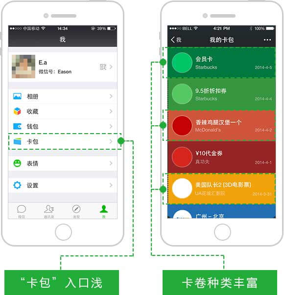 b.依托“微信卡包”,建立微信平台“浅入口”