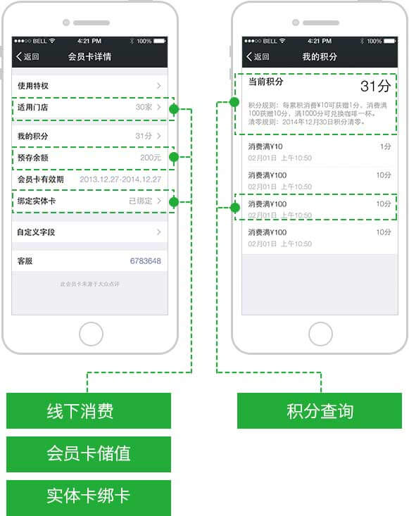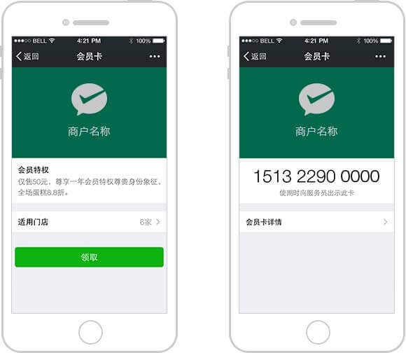 通过微信“卡包”、带服務(wù)能(néng)力的微信消息等能(néng)力提供会员服務(wù),引导用(yòng)户線(xiàn)下行為(wèi)